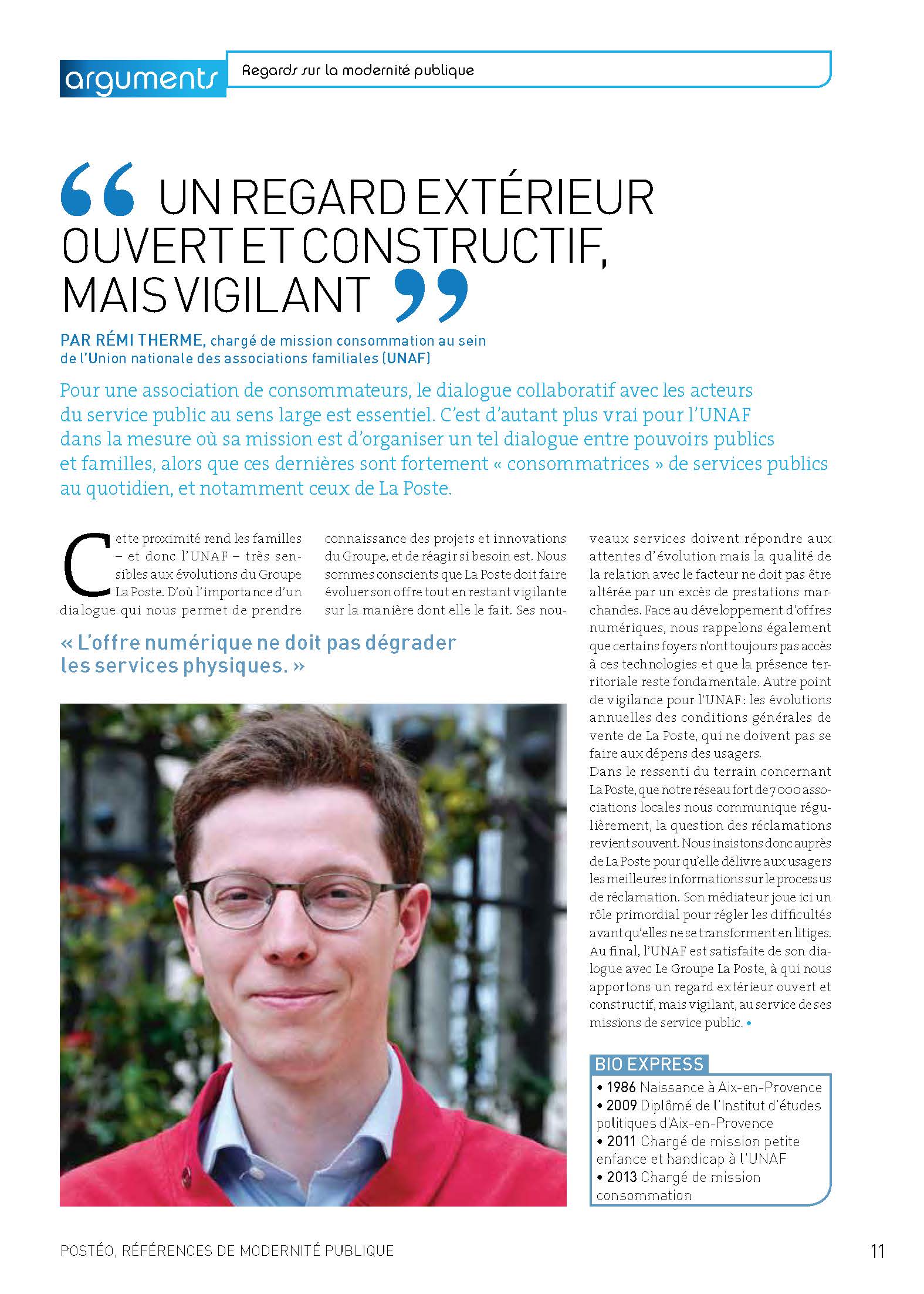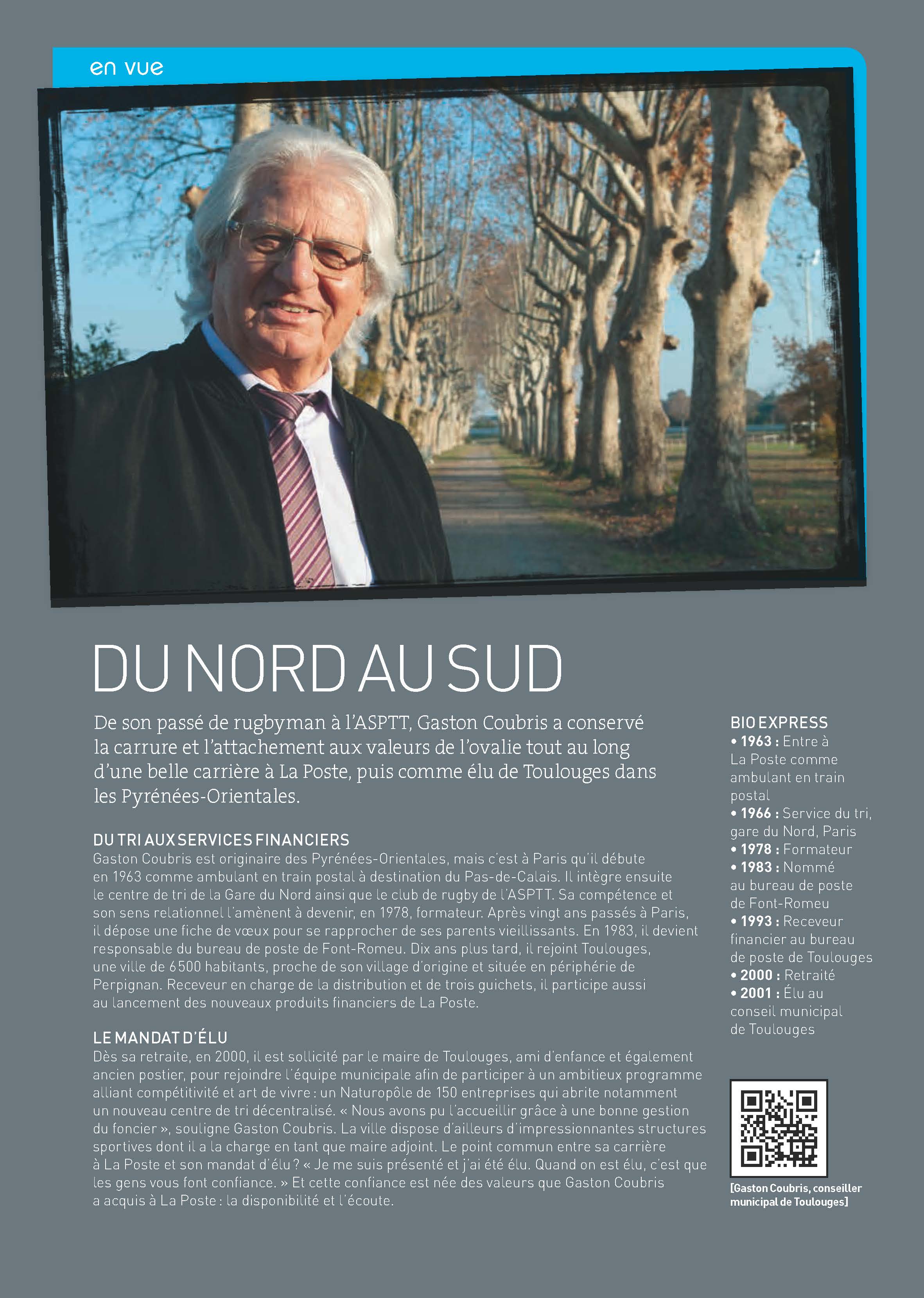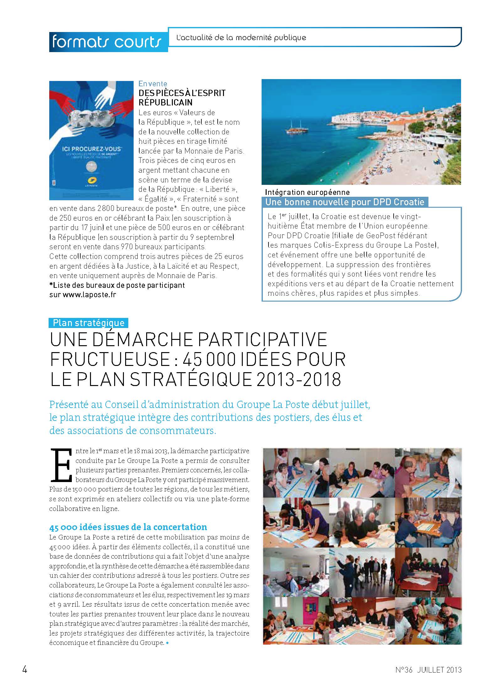 2012/2013 • Ce magazine trimestriel du groupe La Poste, à destination des élus et partenaires locaux, change de peau. Il va porter celle que j’ai concoctée avec notre équipe graphique (charte de la nouvelle formule à la clé). La difficulté réside dans le mode d’élaboration du magazine qui, pour affirmer sa proximité, donne la main aux agences régionales du Groupe pour réaliser « leurs » pages. Gabarits, calibrages et conseils sont donnés en amont. Il faut donc à chaque numéro, outre les pages nationales communes, éditer toutes celles des différentes régions. Gros trafic de pages, et bonnes négociations… La formule me survivra, jusqu’à l’été 2015, ce qui est un score honorable.